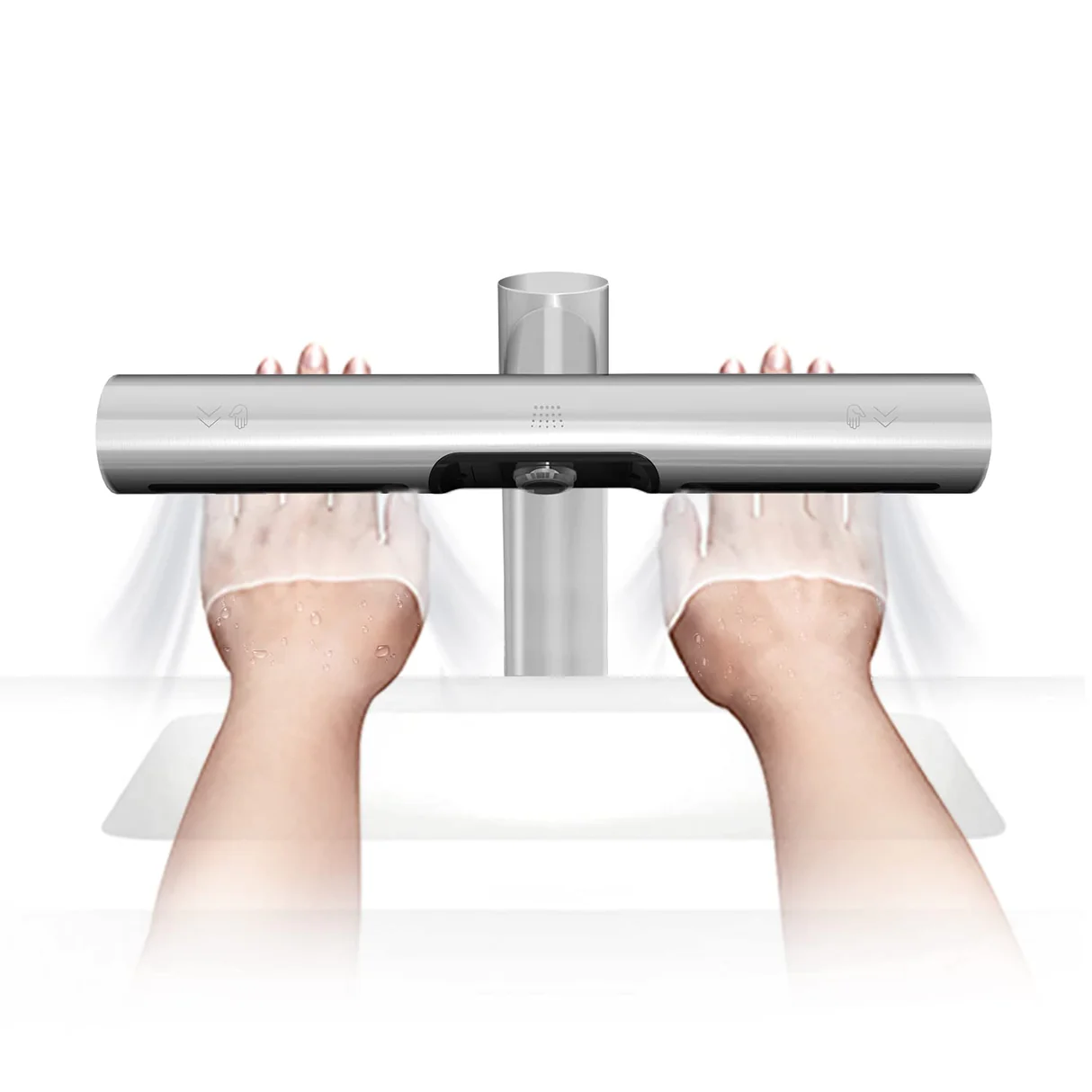 Este innovador equipo combina un secador de manos automático y un grifo en una boquilla integrada, lo que maximiza el espacio y crea una experiencia limpia y optimizada.